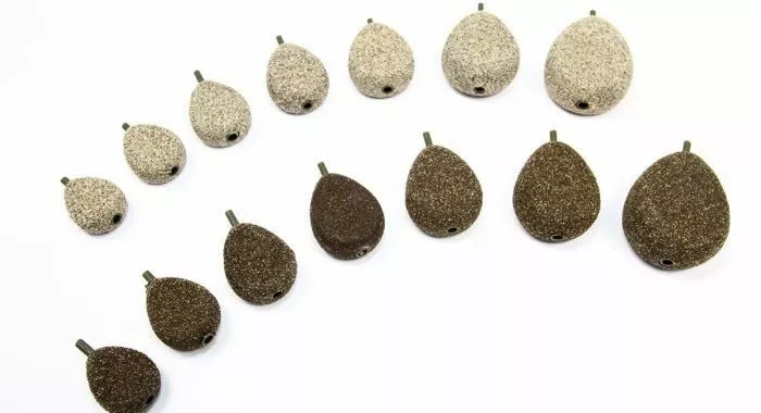 • Uitstekend op kiezel en harde bodems• Plat ontwerp voorkomt rollen• Keuze uit twee kleuren korrelige camouflage coating• Verkrijgbaar van 1.1 tot 6 oz• Kleinere tussengewichten om fijner te kunnen vissen