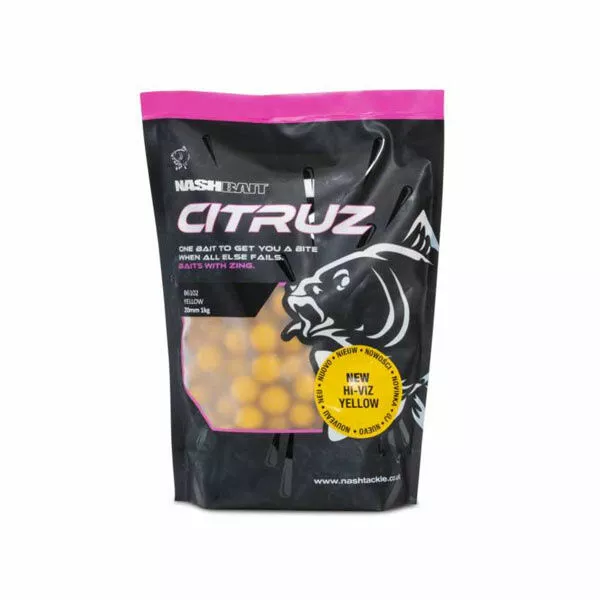 De Nash Citruz Yellow Boilies bestaan uit een gebalanceerde mix van fruitextract, oliën en talin. Samen verspreiden zij onderwater een zeer herkenbare smaak en geur. Dankzij de gele kleur vallen de Citruz Yellow Boilies goed op bij de azende karper. Â