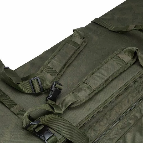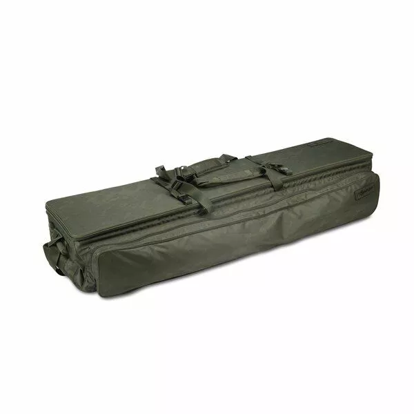 • Keuze uit modellen: 6ft / 9ft / 10ft• Hengels en molens worden vastgemaakt met een Velcrostrip daarnaast heb je nog enkele opbergvakken die makkelijk bereikbaar zijn via de buitenkant• Zakken om de hengeltoppen te beschermen• Kan gedragen worden als rugzak d.m.v een gevoerde schouderriem en een riem voor rond de borst• Kan tevens ingezet worden door zijn compacte platte vorm voor transport op de kar• Zijvakken over de gehele lengte voor het opbergen van bank sticks en rod pods• Dubbele elastiek strips aan de bovenzijde voor de Dwarf Sling Mat makkelijk te transporteren• Waterbestendige onderkant
