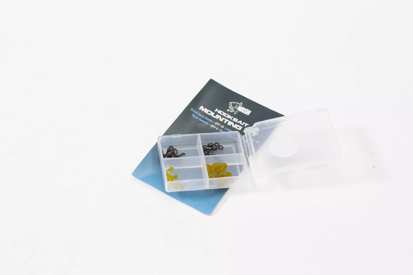 Bevat Hook Beads in twee maten Hook Swivels en Hook Ring Swivels waarmee je glijdende hairs verbeterde anti-eject eigenschappen en snel indraaiende haken kan monteren.
