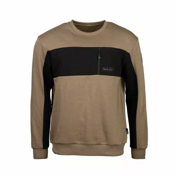 Joggingtrui met ronde kraag en zwart, contrasterende, horizontale band zoals de verticale zwarte band op de jogging broeken. Borstzak met ritssluiting voorzien van Nashlogo op de trekker. Elastische heupband en met een cool Nashlogo. Verkrijgbaar in maten S tot XXXL.Â